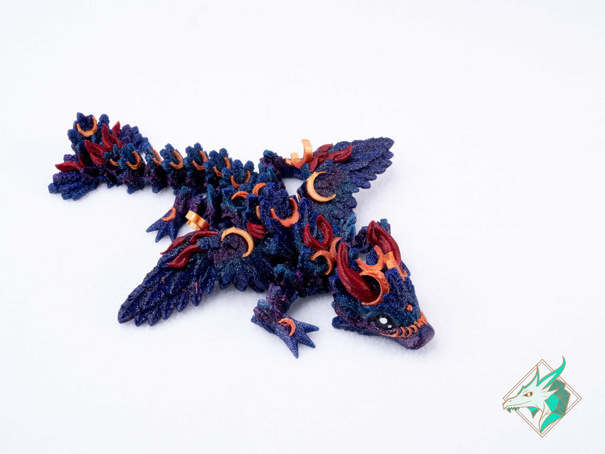 Apparence : Un dragon à plumes avec des lunes et des cornes torsadées spéciales, a des ailes réglables