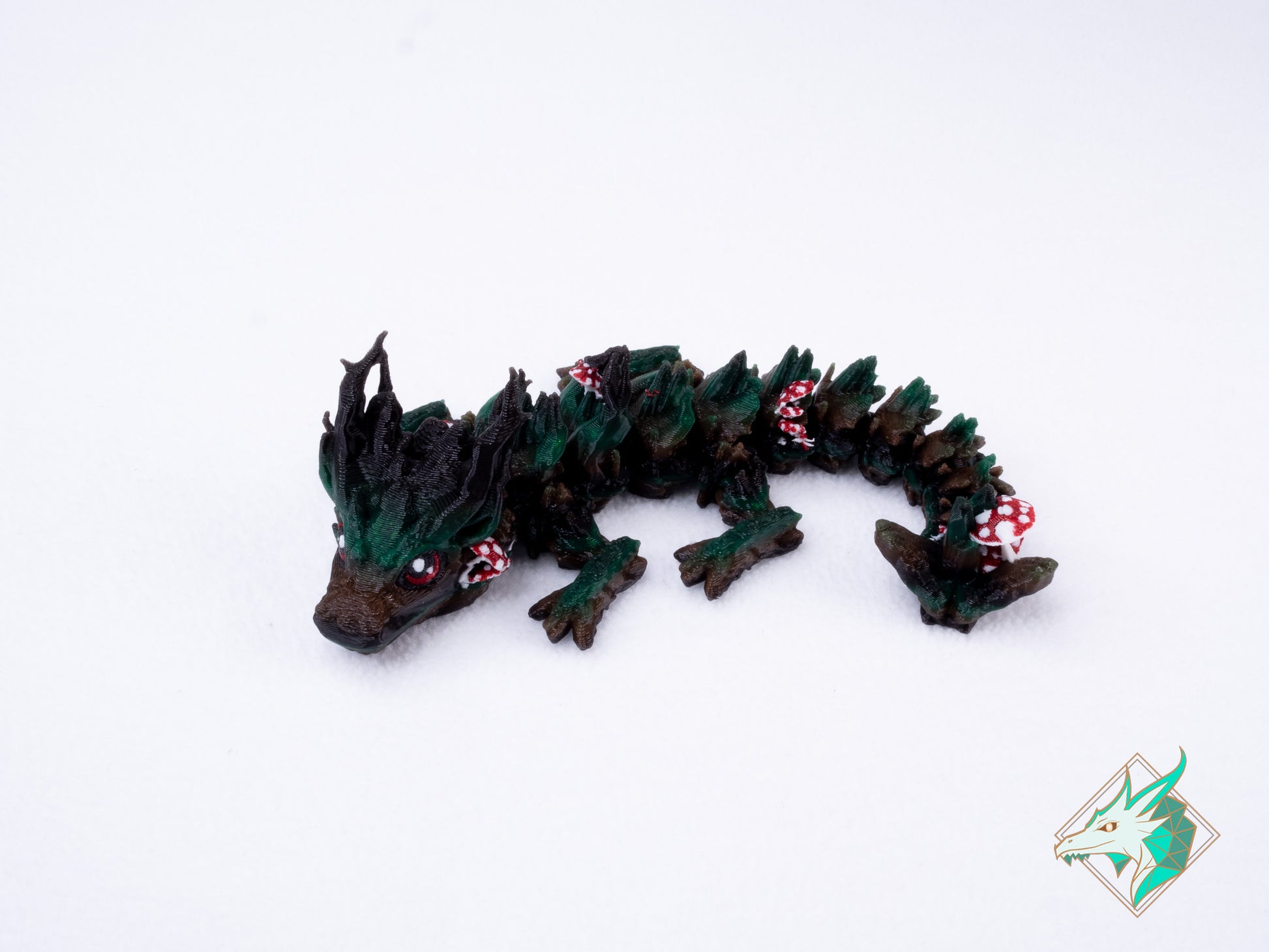 Nos dragons et autres créatures sont imprimés en 3D à la maison en utilisant des matériaux de haute qualité et post-traités à la main. Nous utilisons du polylactide (PLA), un type de plastique fabriqué à partir de ressources renouvelables telles que l’amidon de maïs et la canne à sucre.
