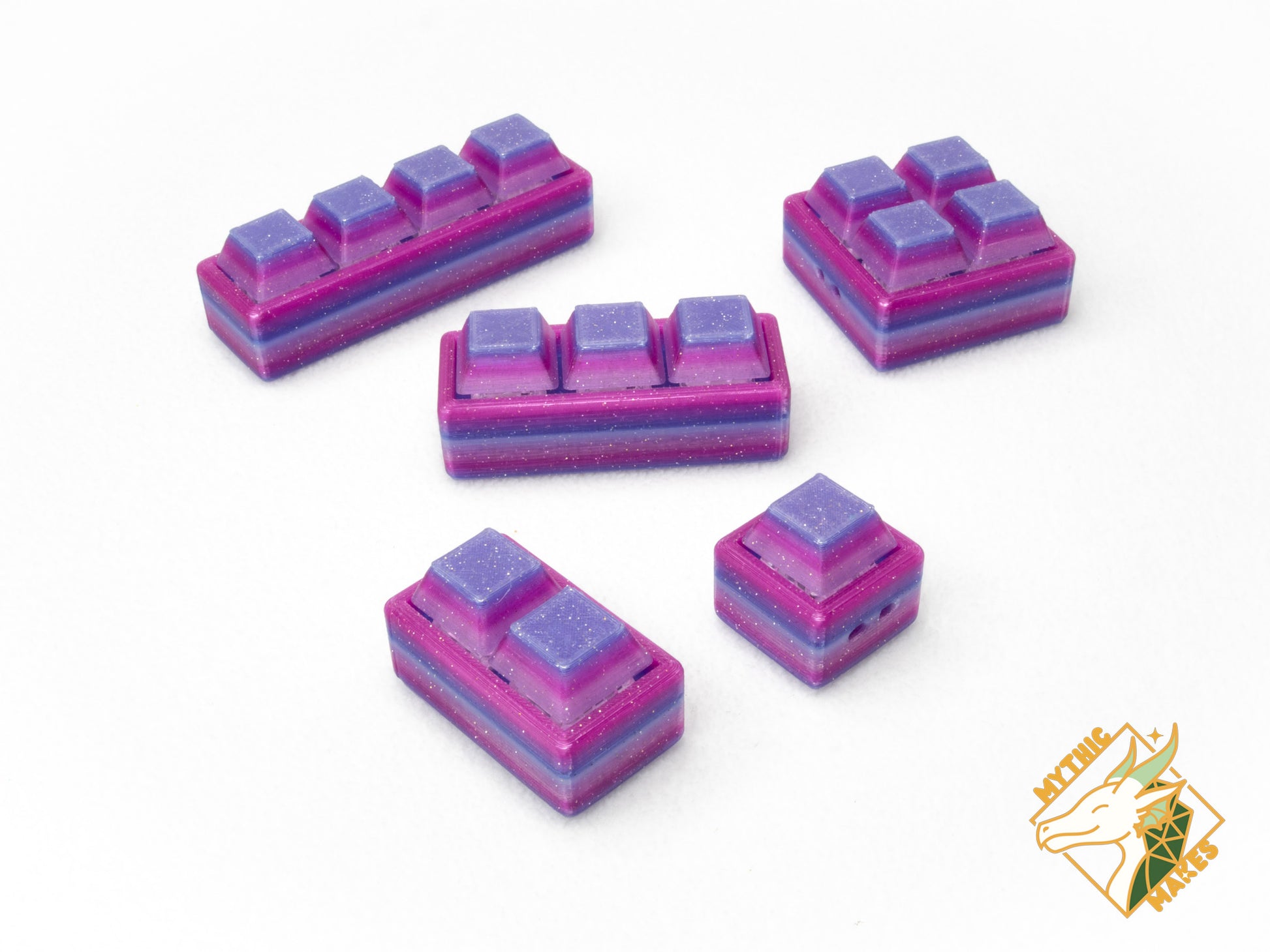 Fidget clicker keychains in verscheidene kleuren. De sleutelhangers bevatten box white mechanical key switches die heerlijk clicky zijn.