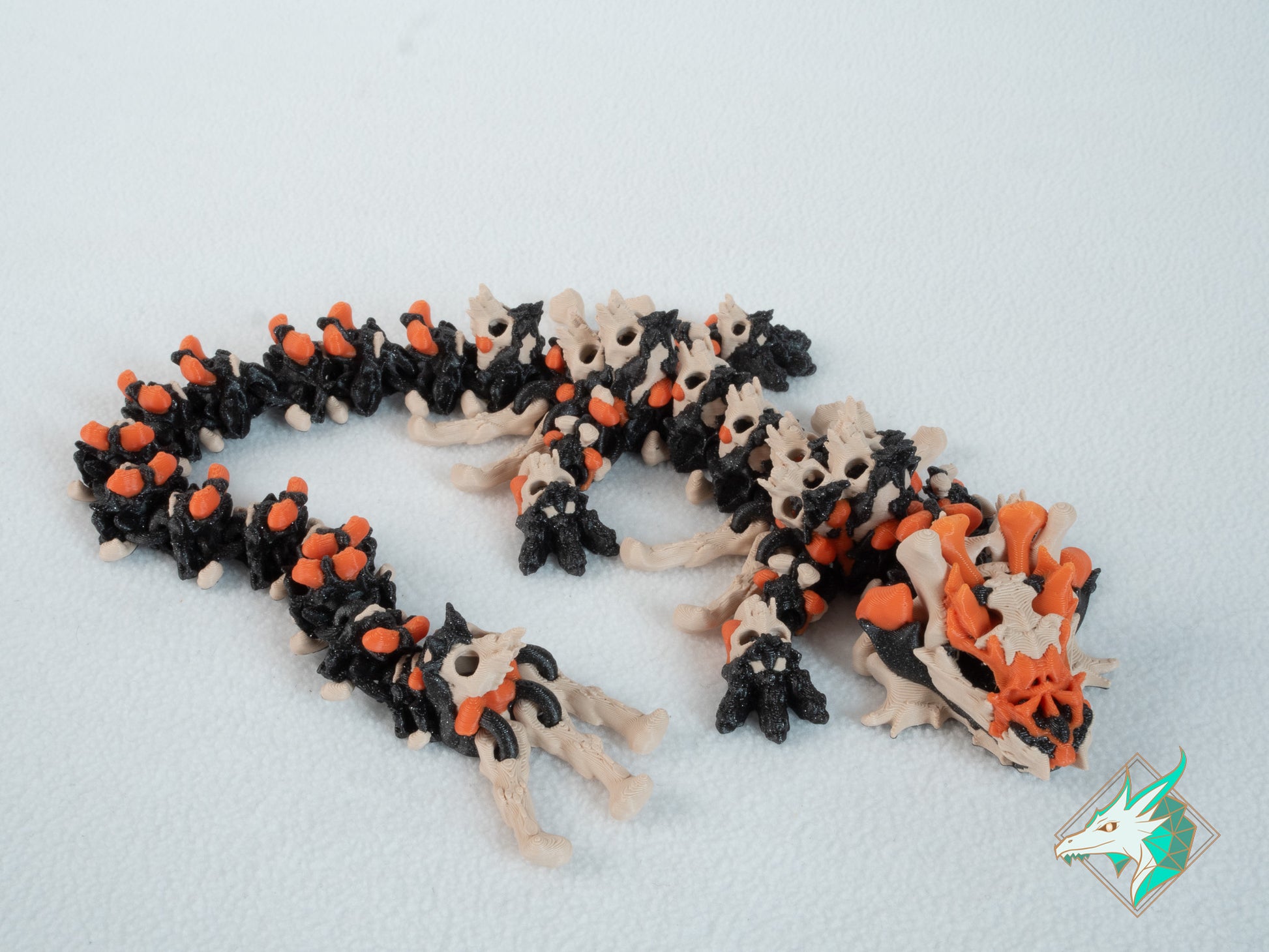 Our dragons and other creatures are 3d printed and post-processed at home using high-quality materials. We use polylactic acid (PLA), produced from renewable resources like corn starch and sugar cane.